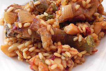 Hoy he preparado un arroz mixto con conejo, calamares y alcachofas.