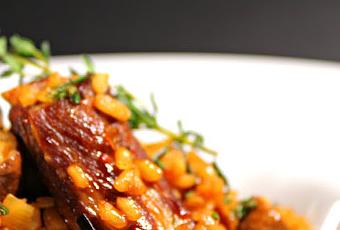 El arroz con costillas es una receta tradicional y económica a la que hemos dado la vuelta con un macerado espectacular que proporciona un plus de sabor y que se complementa muy bien con los champiñones.