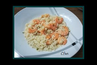 -Poonemos los langostinos en un plato y metemos en el microondas 1 minuto-Abrimos ligeramente la tapa del arroz y metemos en el microondas 1 ó 2 minutos, según nuestro gusto-Juntamos todo en un plato y removemos bien para que el arroz absorba el aceite de los langostinos
