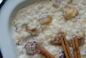 Un postre que me trae muchos, muchísimos recuerdos. De pequeña íbamos todos a comer en viernes Santo a casa de mi abuela bacalao rebozado, empanadillas, ensaladilla rusa, huevos rellenos, filetes empanados, torrijas, una buena fuente de arrozduz, el cual le encantaba a mi abuelo, natillas con galletas y como no, un par de fuentes de arroz con leche con castañas. El trajín en la minúscula cocina preparando todos los platos, la mesa del salón llena de platos terminados esperando a que los comensales llegasen para ser devorados, todos los primos correteando por los pasillos, jugando, tramando diabluras, los mayores regañándonos…