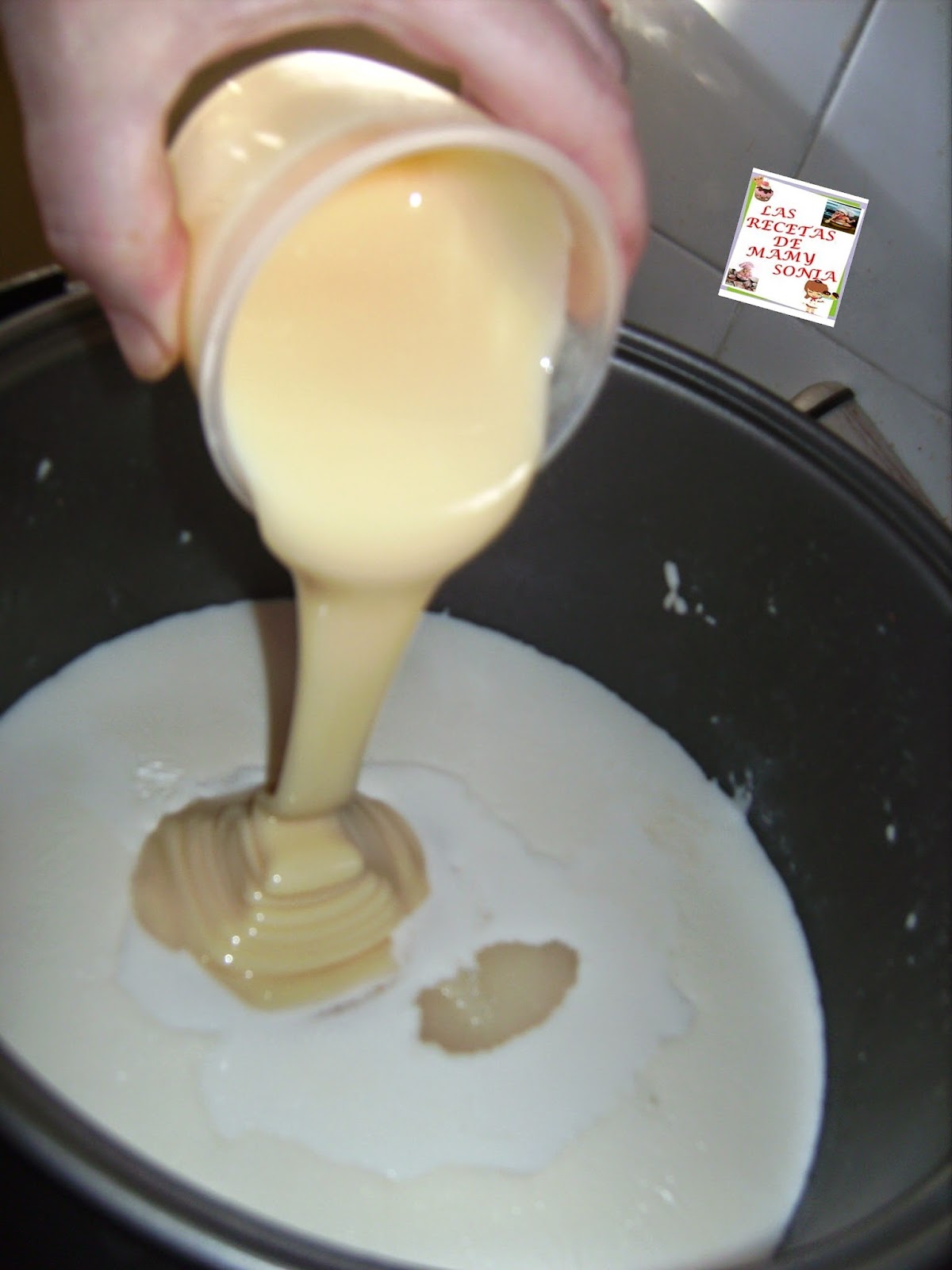 Agregamos el azúcar y la leche condensada y mezclamos bienvolvemos a cerrar y programamos MENÚ