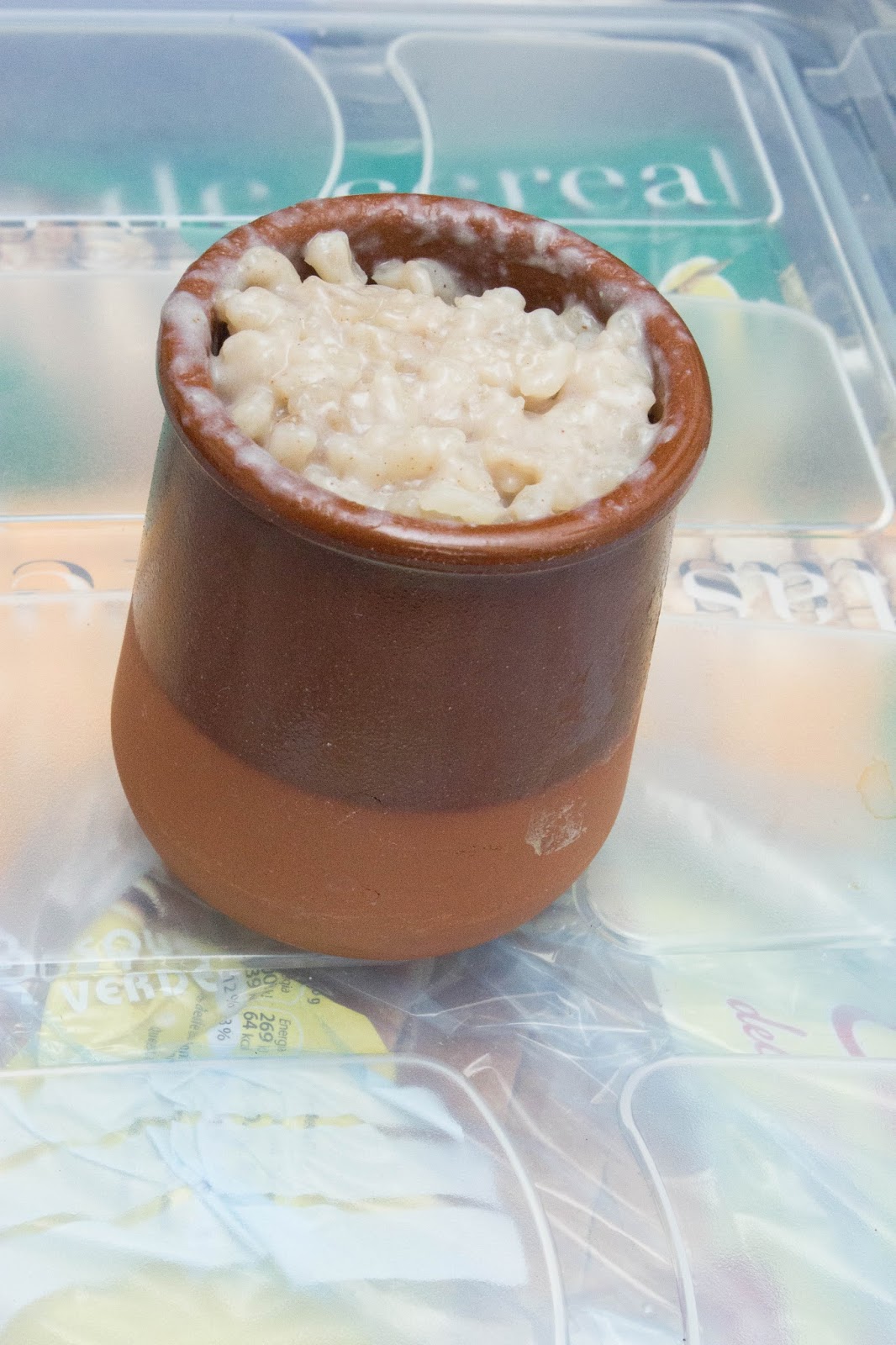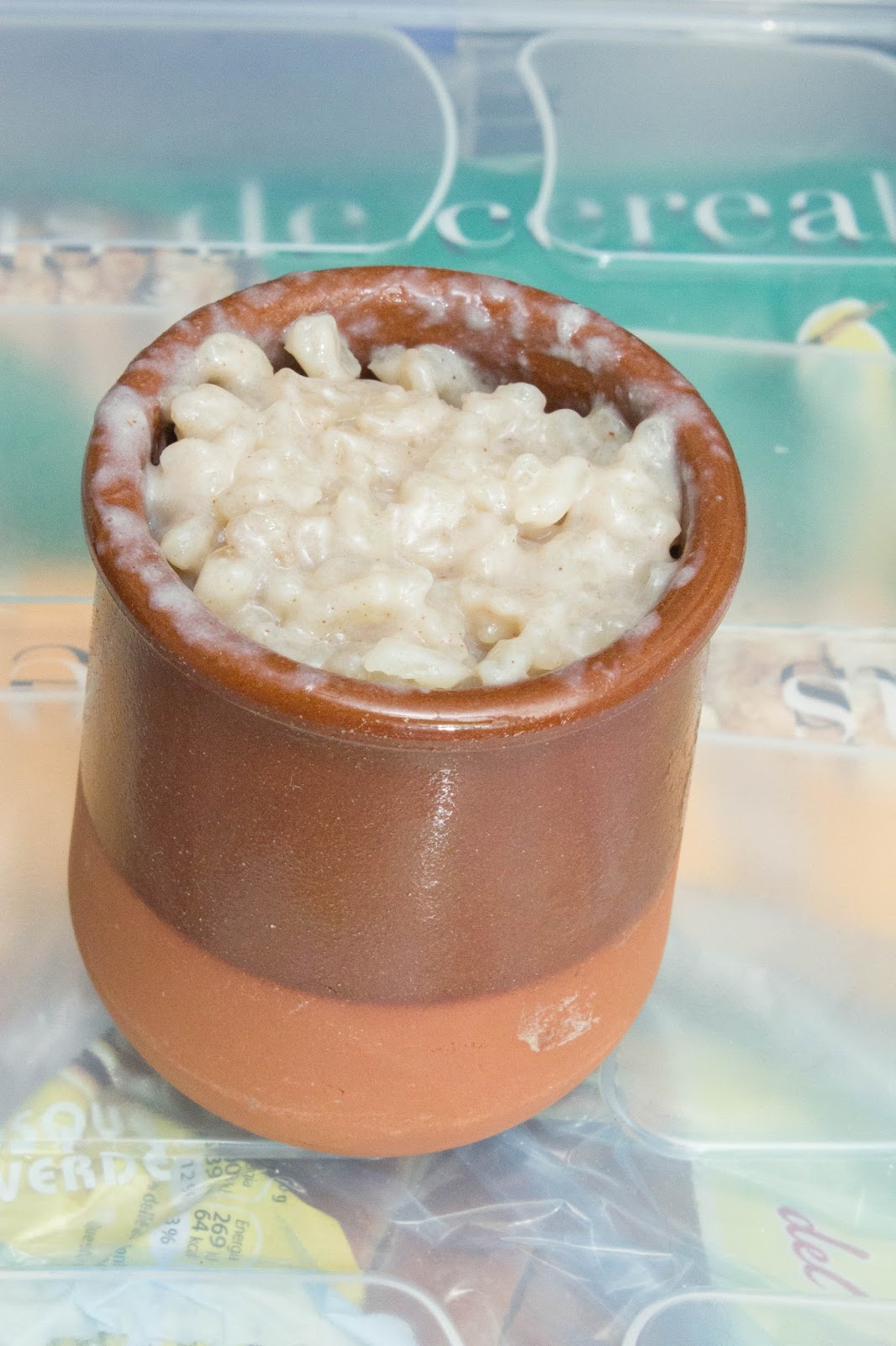 Luego colócalo en un vasito de barro de postres o donde quieras. Déjalo enfriar en la nevera durante unas horas. Yo uso estos que los voy guardando de las cuajadas y pongo film transparente por encima envolviendo todo el vaso, haciendo una especie de vacío.