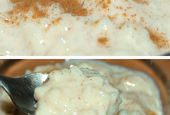 1l de leche entera175g de arrozLa piel de un limónUna rama de canela100g de azúcar50g de mantequilla1/2 cucharadita de canelaUn chorrito de coñac (opcional) –yo no lo puse-Preparación: