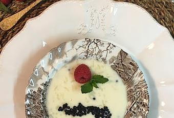 Se vuelve a dejar enfriar. Se sirve en boles o vasitos y se deja en la nevera. Se sirve con unas pocas perlas más de decoración, una frambuesa y una hojita de menta. Si sobra está casi más rico al día siguiente, aunque a mi me gusta hasta templado...