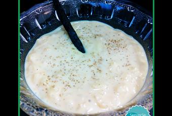 - Colocar la mariposa en las cuchillas, poner en el vaso de Thermomix la leche, el arroz, el palito de canela, la piel de limón, el contenido de la vaina de vainilla y la propia vaina y programar 45 minutos, Temperatura 90, Velocidad 1.