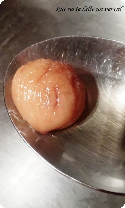 Cuece a fuego medio-bajo hasta que las castañas estén tiernas. Cuida de que no se queden sin agua y añade un poco más si hace falta. las castañas irán tomando color y se irá haciendo el almíbar.