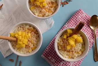 1- En un cazo grande colocamos la leche, el azúcar, la canela, y la corteza de limón y lo ponemos a fuego medio. Mientras, lavamos bien el arroz para que suelte el almidón y lo escurrimos bien. Cuando la leche esté en ebullición, añadimos el arroz y bajamos el fuego al mínimo.2- Dejamos a fuego lento unos 40 min. removiendo a menudo para evitar que se pegue. Pelamos y cortamos medio mango en taquitos muy pequeños. Reservamos. Cuando el arroz esté blando y comience a espesar, retiraremos del fuego y añadimos el medio mango troceado, removemos bien.3- Repartimos el arroz con leche en cuencos y cuando enfríen, los cubrimos con papel film y guardamos en la nevera hasta la hora de servir. Decoraremos con un poquito de canela en polvo y el resto del mango cortado en taquitos.