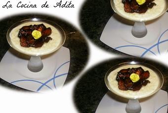 También le podemos poner azúcar, cuando esté frío el arroz, y quemar con un soplete, este es el clásico arroz con leche.