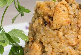 Cuando esté preparado el arroz, echas unas cucharadas sobre el pollo y lo mezclas todo bien para que coja el sabor de la salsa de limón.