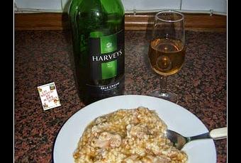 Y ya tenemos listo nuestro arroz con pollo podemos acompañarlo de una buena ensalada y una buena copa de vino como es mi caso de palo cortado un vino estupendo