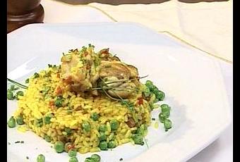 - Disuleva el azafrán con un poco del caldo caliente y agregue al arroz.