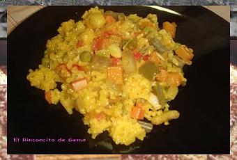 - 4 tacitas de arroz bomba ( a ser preferible de Calasparra) - 250 gr. de gambas - Un calamar o pota - Una cebolleta - Una zanahoria - 1 Pimiento verde - ½ Pimiento rojo - Unas judías verdes - Un puñado de guisantes - ½ Calabacín - Unos ajitos tiernos ( si no tenéis ajos tiernos los podéis sustituir por un par de dientes de ajos) - Un vasito de vino blanco - Un tomate - Sal y pimienta - Aceite de oliva