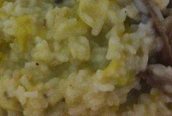- Lava y corta en juliana el puerro, en una cazuela con aceite de oliva caliente incorpora el puerro y echa sal. Cuando este transparente incorpora el arroz y el doble de agua o caldo. Deja que se haga durante 15 minutos. Si es necesario añade más agua para que no se quede seco.