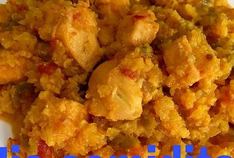 Hace tiempo vi en un programa de cocina australiano que preparaban un plato sustituyendo el arroz por coliflor y me dió la idea de este plato ya que me encanta la coliflor. Es una receta totalmente voluble a vuestro gusto, ya que se trata de cambiar el arroz de cualquier receta que preparéis por coliflor rayada, tan sencillo como eso.