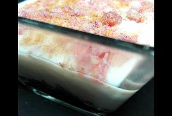 - Emplatado: En un vaso de cristal colocamos cucharada y media de mermelada. Cubrimos con la galleta picada y sobre la misma 4 o 5 buenas cucharadas de arroz con leche. Adornar con un poco de canela en polvo y espolvorear por encima una cucharadita de petazetas.