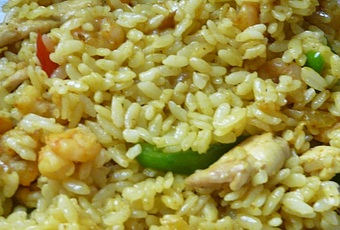 La receta de hoy suele ser de fideos de arroz, pero bueno con arroz también sale muy bueno ya que el arroz coge mucho sabor. Además el arroz contribuye de forma muy efectiva el aporte calórico de la dieta humana actual y encima esta buenísimo con cualquier cosa.