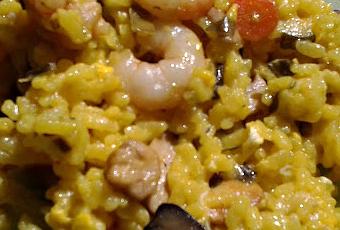 - echamos el arroz y sofreimos añadimos el agua y dejamos cocer ....hasta que se haga ...reservamos .