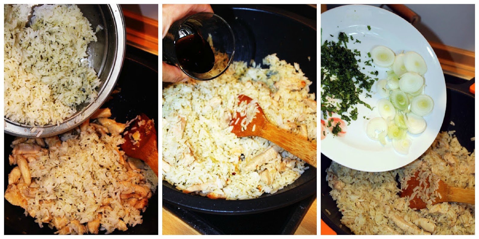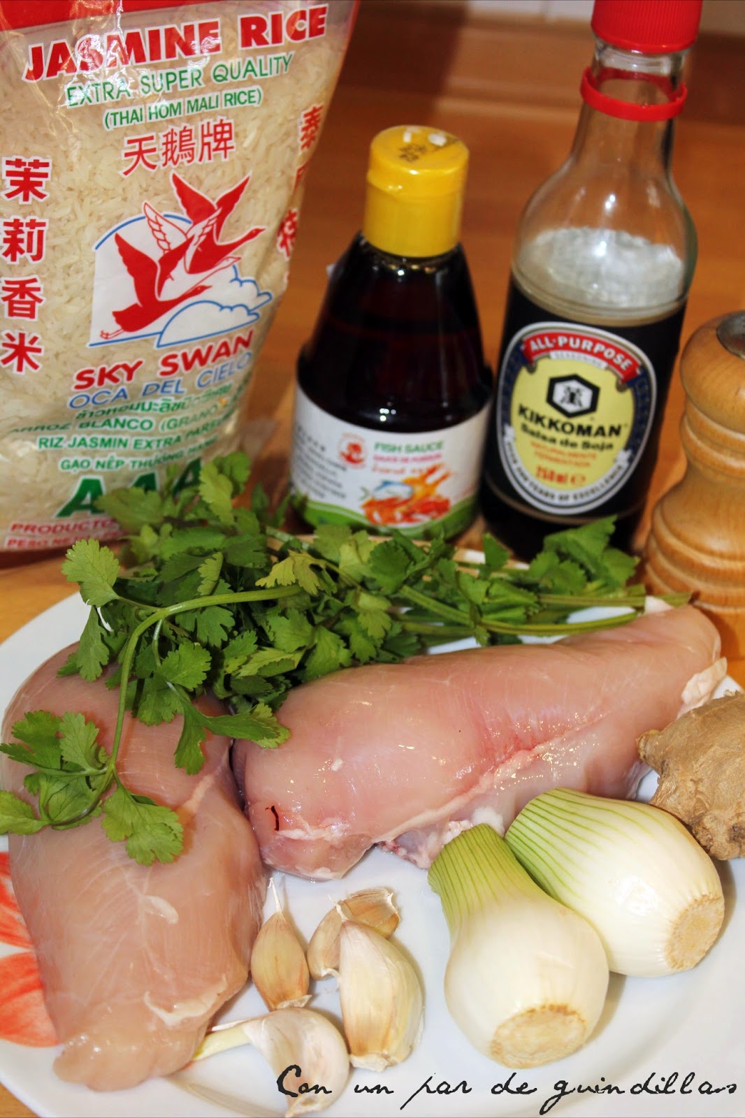 la salsa de pescado, la de soja, la cebolleta y el cilantro