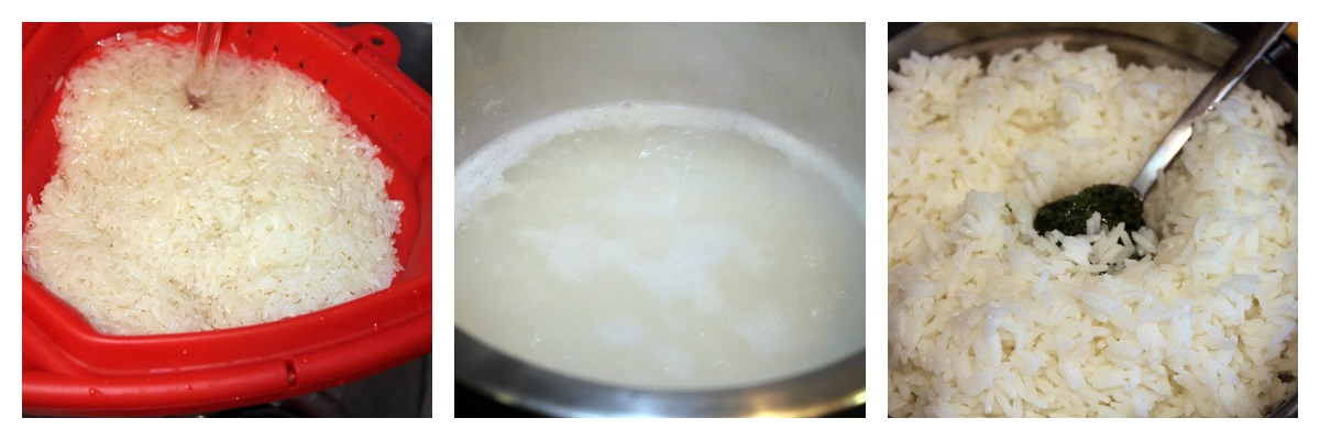 1.- Lavamos el arroz en agua fría, lo escurrimos y repetimos la operación varias veces,