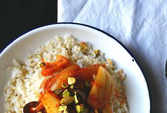Dejar que se cueza durante 10 minutos más. Servir el arroz bien caliente, decorando con los pistachos bien picados.