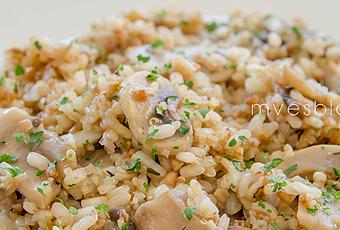 INGREDIENTES (1p) | 1 Taza de quinoa, 100gr de Champiñones, 1 cucharada aceite de oliva, 2 dientes de ajo, tomillo seco, perejil, sal y pimienta.