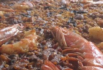 ● 2 l de fumet rojo / 67,63fl oz of red fish stock● 200 gr de panceta fresca / 7,05oz of fresh bacon● 1 pie de cerdo entero hervido / 1 food of boiled whole hog● 8 gambas / 8 prawns● 300 gr de calamares / 10,58oz of squid● 100 gr de pimiento verde / 3,52oz of green pepper● 100 gr de pimiento rojo / 3,52 og red pepper● 100 gr de cebolla / 3,52oz of onion● 1 cucharada de pimentón dulce / 1 tablespoon of sweet paprika● 100 cl de vino blanco / 0,33fl oz of white wine● 150 gr de tomate triturado / 150gr of crushed tomatoes● 200 gr de ceps / 200gr of boletus● 150 gr de trompetas de la muerte / 5,29oz of death trumpets● C/s de aceite de oliva / olive oil as needed● C/s de sal / salt as neededElaboración / Preparation