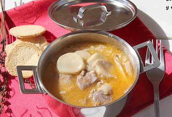 - Cuando hierva, baja a fuego medio y deja cocinar 30 minutos, removiendo de vez en cuando con una cuchara de madera. Cuando queden 10 minutos añade los boletus cortados en rodajas finas y el magret fileteado.