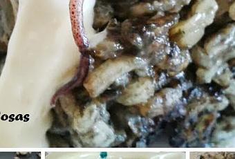 He limpiado los sepionets y los he troceado en trozos menudos, también he pelado las gambas y he reservado.