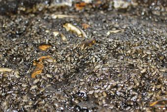 Ahora cogemos la paellera, sofreímos un poco sepia que nos haya sobrado y los mejillones, reservamos. Añadimos cebolla bien picada, cuando este dorada añadimos el arroz y lo sofreímos un poco.