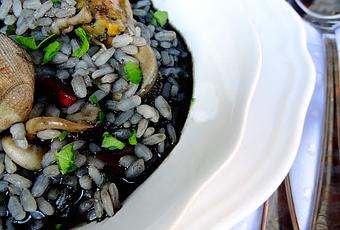 Pues compro un poco de pescado y comeremos un a rroz negro, en esta ocasión caldoso, y nada, aquí estoy con la receta J