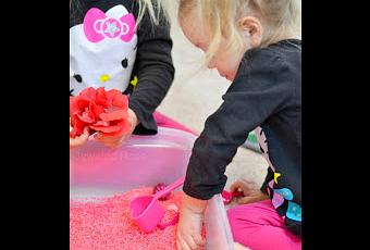 Para jugar puedes darles, palas pequeñas, tenedores para hacer surcos, cuencos y pequeños objetos que enterrar en el arroz.
