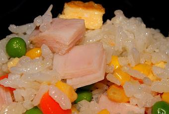 Lavamos bien el arroz para quitarle el almidón y ponemos a cocer en una cazuela con agua y un poco de sal. Cocemos alrededor de 8 minutos y escurrimos. Untamos la placa del horno con aceite y extendemos el arroz. Echamos un chorrito de aceite de oliva y metemos al horno a 220º durante 20min para secar un poco el arroz. Otra posibilidad es freirlo directamente en una sartén.