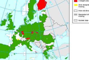 Arsénico: Mapa del valor objetivo anual para protección de la salud (Europa, 2008)[ Fuente: Agencia Europea de Medio Ambiente ]