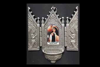 Tras esta primera etapa, constatamos un vacío, un tiempo en el que apenas parece haber muestras de benditeras con motivo teresiano. En el video, encontramos una benditera italiana, en madera dorada, con una vitela de Amberes, y otra, española, en plata repujada y troquelada, con un pequeñito esmalte.