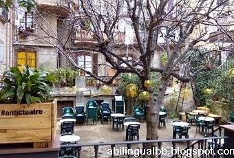 El otro día, fuimos a ver la obra Alles invitados por Antic Teatre. En esta obra de danza y sonido, Ángela y Koldo ofrecían una espectáculo super original de unos 40 minutos y, justo después, hacían un taller de sonido de unos veinte minutos con el público. Sé que a mi hijo le gusta un espectáculo porque, después, en casa, de repente se acuerda de algo que ha visto. Esa tarde, empezó a probar sonidos que se le ocurrían en casa. Por si alguien va a verlos en marzo, no pondré spoilers, pero sí que os digo que es un espectáculo muy original. Como no me gusta hacer fotos mientras trabajan los artistas (nunca sé si les puede molestar o distraer), os dejo con esta foto de la terraza del Antic Teatre. Está abierta todas las tardes de la semana y tiene wifi, prensa diaria, cócteles y bocatas. Lo que ingresan se invierte en financiar la programación artística de este centro cultural.
