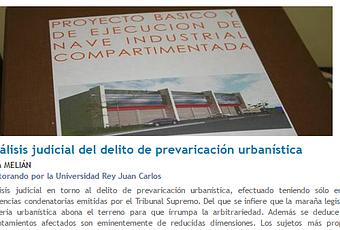Hoy ha aparecido publicado un artículo mío en el Diario LA LEY (Nº 8726, Sección Dossier, 21 de Marzo de 2016, Ref. D-118), titulado: "Análisis judicial del delito de prevaricación urbanística". Revista de prestigio editada por Wolters Kluwer y destinada a los profesionales del sector jurídico. Texto que forma parte de la investigación que estoy realizando, como doctorando, sobre las posibles causas que provocan las desviaciones del sistema.