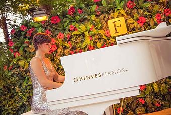 Junto a Hinves participó tocando un Steinway en la presentación del champán Rich by Veuve Clicquot, en el Fortuny Home Club de Madrid y en la entrega de Premios Vogue Joyas, en el Palacio Santoña.