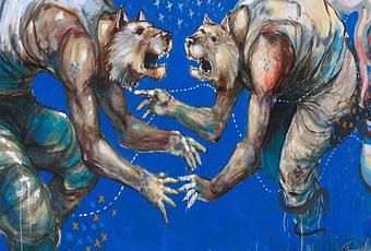 Una de las marcas de sus trabajos son los personajes sin rostro o con cabezas de animales. "Uso animales o máscaras para quitarles identidad personal por una general"