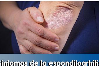El dolor lumbar es el síntoma más característico de la espondiloartritis axial. Aparece cuando la persona se encuentra en reposo y mejora con la actividad física. Así, el dolor suele ser máximo durante la noche y obliga a la persona a levantarse y caminar para notar sensación de alivio o el cese del dolor. Otros síntomas incluyen fiebre, pérdida de apetito y fatiga. En cuanto a la artritis psoriásica, se manifiesta generalmente por dolor y rigidez en una o más articulaciones, hinchazón de los dedos de las manos o pies, dolor de espalda baja y parches rojos con escamas plateadas en la piel.