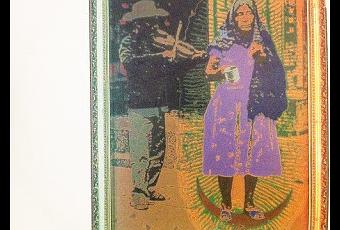 La portada de este álbum es también de las mejores en la discografía de Meza, para la cual se le da crédito al Taller de Documentación Visual. Me imagino que puede resultar incluso escandalosa para aquellos que veneran la imagen de la Vírgen de Guadalupe aquí representada por una anciana indígena que pide limosna, en compañía de otro anciano que podría ser su marido y que está tocando el violín, seguramente para poder sobrevivir.