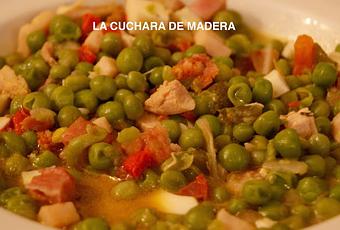 Un plato canario lleno de sabor , dependiendo de cada casa varían algunos ingredientes de la receta, aunque el sabor de las especies es común en todos ellos.Ingredientes:500 gramos de guisantes congelados3 huevos2 contramuslos de pollo1 loncha de unos 80 gramos de pechuga de pavo1 loncha de unos 70 gramos de jamón serrano (cuanto mejor sea el jamón más sabroso queda)Aceite de oliva virgen extra2 cebollas medianas3 dientes de ajo1 pimiento verde mediano1 pimiento rojo medianoSalPimientaTomillo (la punta de una cuchara pequeña)Orégano (la punta de una cuchara pequeña)Laurel (la punta de una cuchara pequeña)4 cucharas de tomate natural triturado.Medio vaso pequeño de vino blanco2 tazas grandes de Caldo de verduras y carne (queda muy rico con este caldo pero si no tenemos podemos aprovechamos el caldo de cocer el pollo)