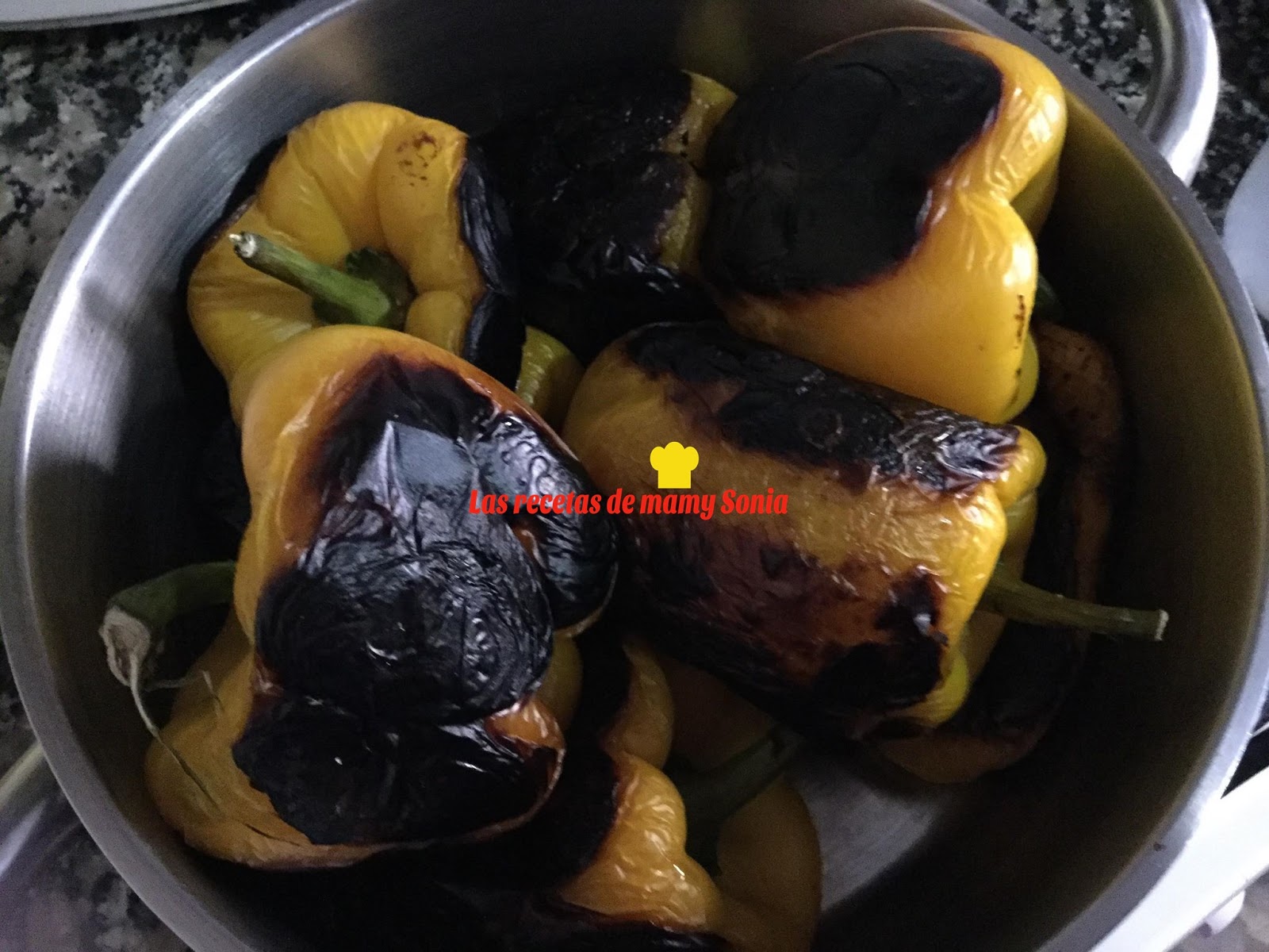 Una vez que veamos que están totalmente asados los pasamos a una cacerola y los tapamos esto nos facilitara el pelarlos
