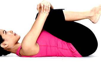 Exhalando dobla lentamente las piernas y ayudándote con las manos coloca las rodillas lo más cerca del abdomen y del pecho que puedas. Mantente ahí abrazando tus rodillas contra el abdomen.