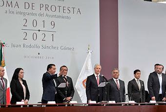 “Juntos fortaleceremos la seguridad, crearemos más empleos, impulsaremos la obra pública y la mejora de los servicios públicos, pero, sobre todo, cuente con nuestro apoyo para que las familias de Toluca tengan más oportunidades y una mejor calidad de vida, ése es nuestro compromiso con los toluqueños”, enfatizó.Añadió que con la toma de protesta de Juan Rodolfo Sánchez, Toluca inicia una nueva etapa en su desarrollo, en la que será gobernada por un hombre comprometido, que conoce los desafíos de la capital y que ha trabajado durante años para mejorar los niveles de bienestar en esta ciudad.Ante líderes empresariales y sindicales, representantes de organizaciones civiles, académicos, magistrados, diputados, alcaldes y ciudadanos, Alfredo Del Mazo subrayó que como resultado de la relación entre el Gobierno del estado y el Ayuntamiento de Toluca, se implementaron más de 100 mil operativos de seguridad con la administración saliente, además de equipar unidades de transporte público con cámaras de videovigilancia, botones de pánico y sistemas GPS.A la par de estas acciones, se puso en marcha un programa de recuperación de espacios públicos, como la rehabilitación de los museos de Antropología e Historia, Arte Moderno, Luis Nishizawa, de la Acuarela, Torres Bicentenario o el Jardín Botánico del Cosmovitral.El Gobernador Del Mazo acentuó la importancia que tiene la construcción de diversas obras como el Tren Interurbano Toluca-México o el proyecto de ampliación del Aeropuerto Internacional de Toluca, porque consideró que esta infraestructura consolidará la relevante posición del Edoméx como centro logístico en el centro del país.“El tren, el aeropuerto, más una serie de infraestructuras de obra vial que se han llevado a cabo en nuestra capital y en los alrededores, nos colocan con una gran ventaja competitiva para convertirnos en un centro logístico del centro del país. Estas obras, más las que llevaremos a cabo como Gobierno del estado, Gobierno federal y ahora de la mano de la nueva administración, estamos seguros que darán impulso a la movilidad y a la conectividad que requiere nuestra capital”, refirió el Gobernador.Por su parte, Horacio Duarte Olivares, Subsecretario del Empleo de la Secretaría del Trabajo y Previsión Social, y representante del Presidente de la República, Andrés Manuel López Obrador, reconoció la disposición del Gobernador Alfredo Del Mazo por trabajar en equipo con la federación en materia de seguridad, y consideró que lo mejor para el desarrollo de los mexiquenses es que las autoridades de los distintos niveles de Gobierno se coordinen para atender los temas de interés público.“Reconozco la disposición del Gobernador Alfredo Del Mazo por ese trabajo en materia de seguridad en la estrategia de paz y seguridad como ya se ha señalado aquí. El Estado de México seguirá siendo el estado más importante de la República; si los tres órdenes de Gobierno trabajamos de la mano en beneficio de los habitantes, en este caso de Toluca”, puntualizó.El Alcalde entrante de Toluca, Juan Rodolfo Sánchez, aseguró que en esta nueva oportunidad para gobernar la capital mexiquense, su administración privilegiará una actitud humilde, cercana y eficaz con la ciudadanía.Aseguró que en su administración “no se harán de la vista gorda” para castigar los actos de corrupción ni a la delincuencia, e informó que en el rubro de seguridad se invitará a un equipo moderno o en el mejoramiento del Centro de Mando, para lograr devolver la tranquilidad a los toluqueños.Aseguró que el próximo 2 de enero pondrá en marcha un programa de repavimentación de vialidades en el municipio, y anticipó que sostendrá reuniones con autoridad estatales para coordinar esfuerzos en materia de vialidad y desarrollo urbano para agilizar los accesos carreteros más importantes en la ciudad, a la par de impulsar una campaña de reforestación en zonas urbanas para mejorar la calidad ambiental en el Valle de Toluca.