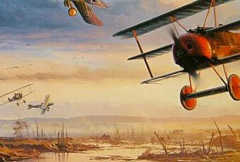 El Barón Rojo.Manfred von Richthofen no fue un piloto excepcional pero si lo fue su brillante puntería alcanzando a 80 aviones enemigos, el que más bajas enemigas provocó. Oficial de caballería y aburrido de las emociones terrestres se alistó en la aviación. Tras un comienzo poco prometedor al destrozar su avión en su primer vuelo el 17 de septiembre de 1916 su habilidad con su avión, un Albatros D.II, cobró sus primeras víctimas (un total de 3) tras ver cómo caía el avión que había derribado, un FE2b, aterrizó tratando de salvar a sus ocupantes en vano. Richthofen más tarde comandaría su propias escuadrilla, Jasta 11, donde en su gesto provocador pintaría su Albatros D.III de un rojo rabioso, de ahí su apodo de Barón Rojo. Tras ser derribado y permanecer una temporada reposando volvió a los cielos pero volvió solitario, retraído y escéptico. El 21 de abril de 1918 tras encontrarse con un grupo de aviones enemigos comenzó su última batalla tras ser derribado por el fuego enemigo. Una única bala en el vientre acabó con su vida. Fue enterrado con todos los honores por los enemigos increíblemente emocionados al haber perdido al mayor as del aire de la guerra.