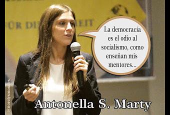 No existe la menor de las dudas de que Antonella S. Marty es un producto formado por los más turbios intereses de la actual derecha latinoamericana y de sus principales patrocinadores originarios como la Atlas Economic Research Foundation y el Cato Institute, quienes la han llevado a "relucir" en actividades provocadoras promovidas por organizaciones de dudoso desempeño y servidores de la política USA como la venezolana CEDICE Libertad, la argentina Fundación Libertad y la española Fundación Internacional para la Libertad, el Centro de Investigaciones Sociales y Económicas (CISE) y el norteamericano The International Freedom Educational Foundation (IFEF). En este contexto se afilió a SFL-Latin America conocida como Eslibertad, escalando en esta última de Directora Regional para Argentina y Chile a miembro de su Comité Ejecutivo.
