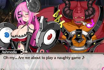 Como os hemos dicho Ashmedia es la Overlord de la Lujuria, y desempeña su rol muy bien, pues se dedica a flirtear y provocar al protagonista Zeabolos, durante todo el juego. Su objetivo es siempre sacar el mayor placer posible de cualquier situación, y para ella, derrotar a Trillion es el gozo definitivo.