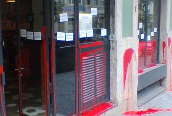 El restaurante apareció con pintadas rojas en sus fachada en la que habían escrito frases como “free palestine”, “plato principal: fósforo blanco” o “Avillez colabora con la ocupación sionista”