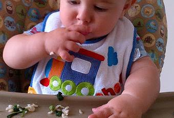 Desde que nuestro hijo comenzó con la alimentación complementaria hemos querido enseñarle a comer. Antes del año la leche debe ser su principal alimento y con la lactancia a demanda estábamos seguros de que alimentado iba a estar. Además nuestro bebé es un bebé de pecho bien criado! Es decir con sus redondeces y roscas en brazos y piernas... pero de tronco estilizado! Así que a ojos de abuelas, tías, vecinas y cajeras de súper es evidente que no le falta comida;)