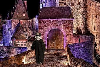- Entramos y avanzamos por los pasillos del castillo iluminados por las linternas de los móviles que portábamos en nuestras manos.